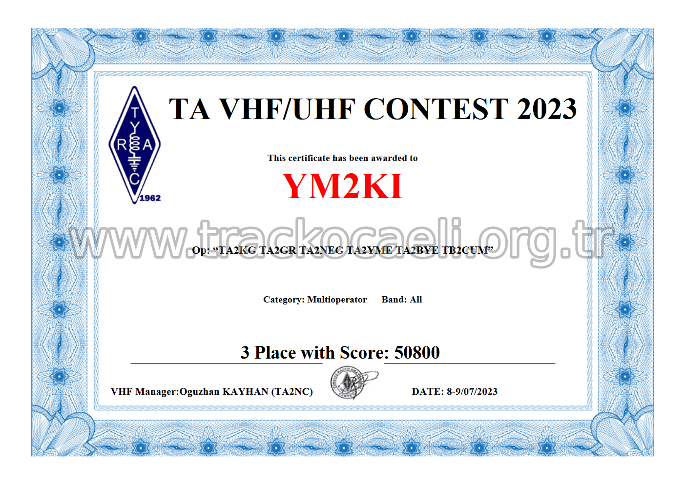 TA Contest Katılım Sertifikalarımız